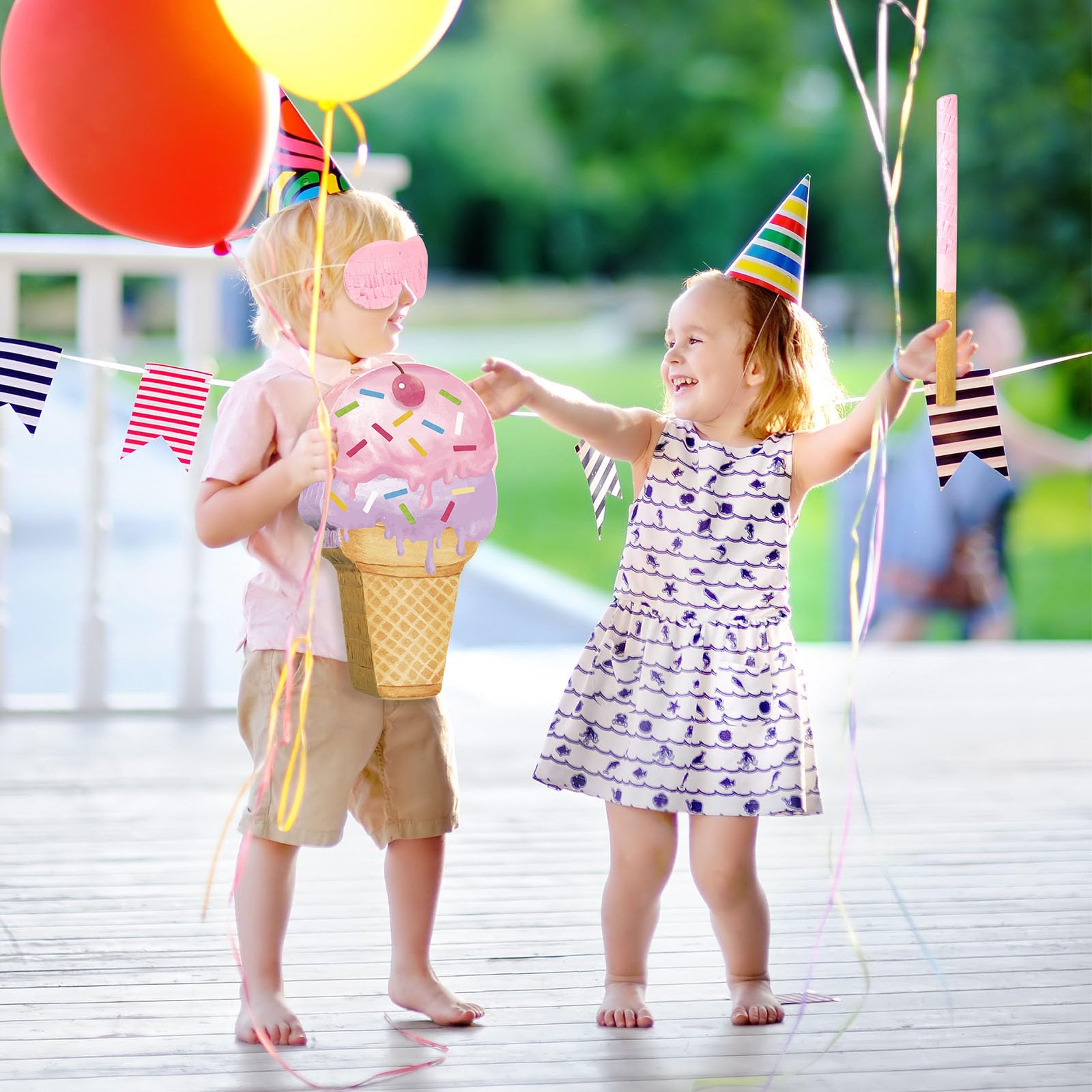 - Wide Application: this ice cream Piñata can be applied for birthday parties, dessert parties favor, baby showers, ice cream theme parties, summer theme wedding, candy theme parties, Children's Day and circus carnival, and also can be applied for classroom activities, school holiday celebration, family beach anniversary decoration and more